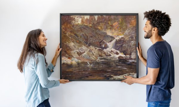 Meisterdruckeでは、選択したアート作品をご自身の空間でご覧いただけるという魅力的なオプションを提供しております。画像をアップロードしていただくだけで、その画像の中にアート作品が映し出されます。携帯電話やタブレットなどのモバイルデバイスでご覧いただいている場合は、AR(拡張現実)機能を利用して、お客様の空間にシームレスに投影することができます。アートとテクノロジーのユニークな融合をご体験いただけます。
