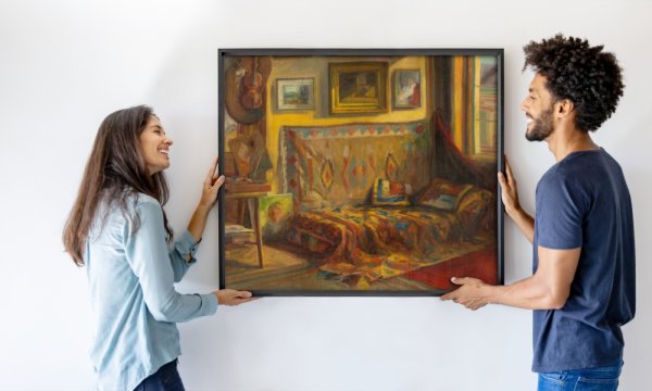 Meisterdruckeでは、選択したアート作品をご自身の空間でご覧いただけるという魅力的なオプションを提供しております。画像をアップロードしていただくだけで、その画像の中にアート作品が映し出されます。携帯電話やタブレットなどのモバイルデバイスでご覧いただいている場合は、AR(拡張現実)機能を利用して、お客様の空間にシームレスに投影することができます。アートとテクノロジーのユニークな融合をご体験いただけます。
