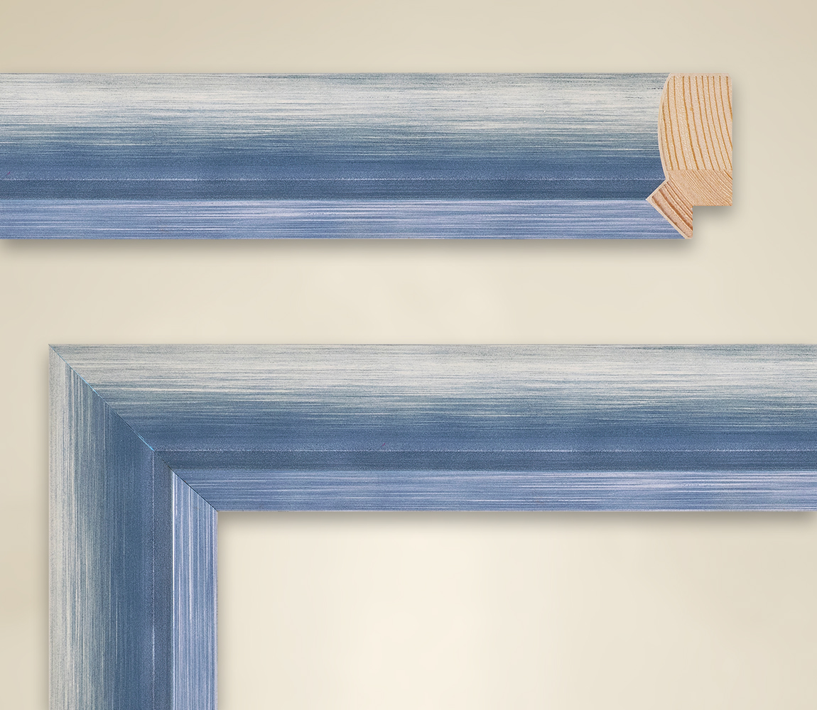 この額縁Luanaは、地球上の天国をほぼ約束します。このフレーム上の天国のような青い色の混合物は、場所を見つける部屋に空間と開放感を与えます。しかし、絵画、写真、またはアートプリントなど、Luanaでフレーム化されるものはすべて、おそらくこのフレームでクラウドナインに浮かぶでしょう。銀の縁取りが施された青灰色は、次の寸法で確認できます。幅44 mm、高さ25 mm。銀は角棒に適用され、空色のストライプと一緒に、額縁の内部の端を形成します。溝に濃い青色が表示されます。これは、上部領域の丸棒の境界を表します。これにスモークブルーが続き、プロセスが進むにつれてますます明るくなります。銀色の白がフレームの上部で優勢です。アーティストのブラシで塗ったように、青、銀、白の色合いがフレームに現れます。したがって、Luanaは実際の芸術作品と競うことができます。 |