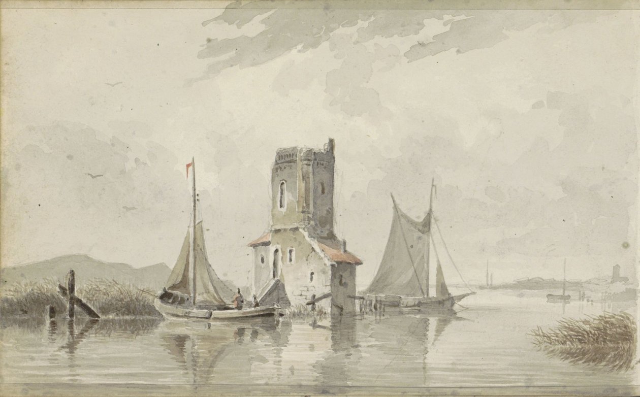 塔のある川の風景(Rivierlandschap met een toren)アドリアヌス・エヴァーセン(draughtsman) |