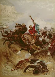 ネルヴィルとコグヒル中尉、色彩を保存、1881年(オレオグラフ)(Lieutenants Nelville and Coghill saving the Colours, 1881 (oleograph))アルフレッドABドゥノーヴィル |