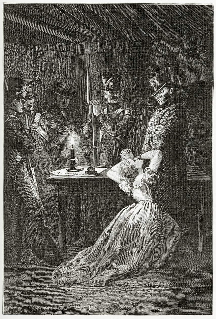レミゼラブルのイラスト、19世紀(bw彫刻)(Illustration from Les Misérables, 19th Century (bw engraving))アルフォンス・マリー・ド・ヌーヴィル |