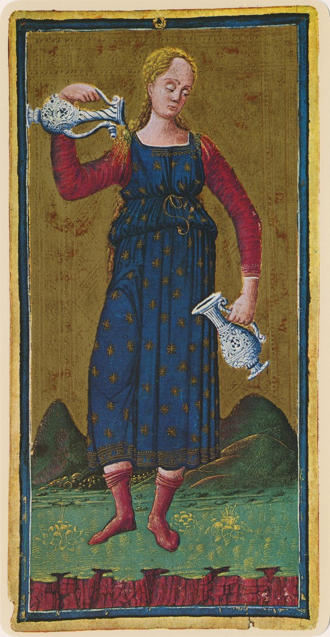 禁酒、「ビスコンティ」デッキからのタロットカードの複製、1441-47(Temperance, fascimile of a tarot card from the 'Visconti' deck, 1441-47 )ボニファシオ・ベンボ |