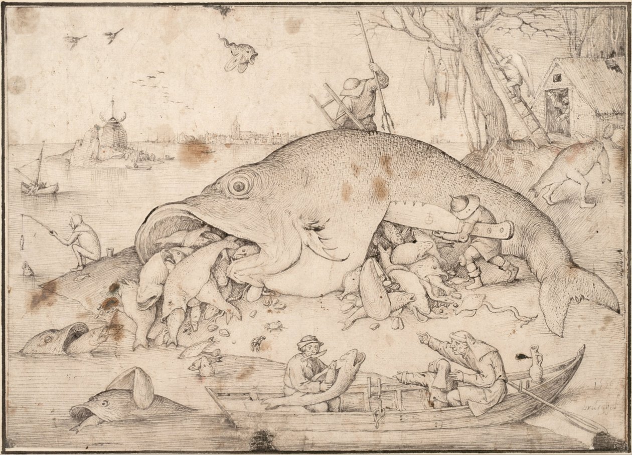 大きな魚が小さな魚を食べる、1556 · ブリューゲル