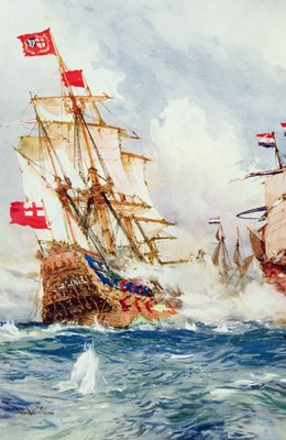 ブレイクが海を席巻したとき:ブレイク提督とヴァン・トロンプ提督の戦い(カラーリトグラフ)(When Blake Swept the Seas: A Battle between Admiral Blake and Van Tromp (colour litho))チャールズ・エドワード (後) ディクソン |