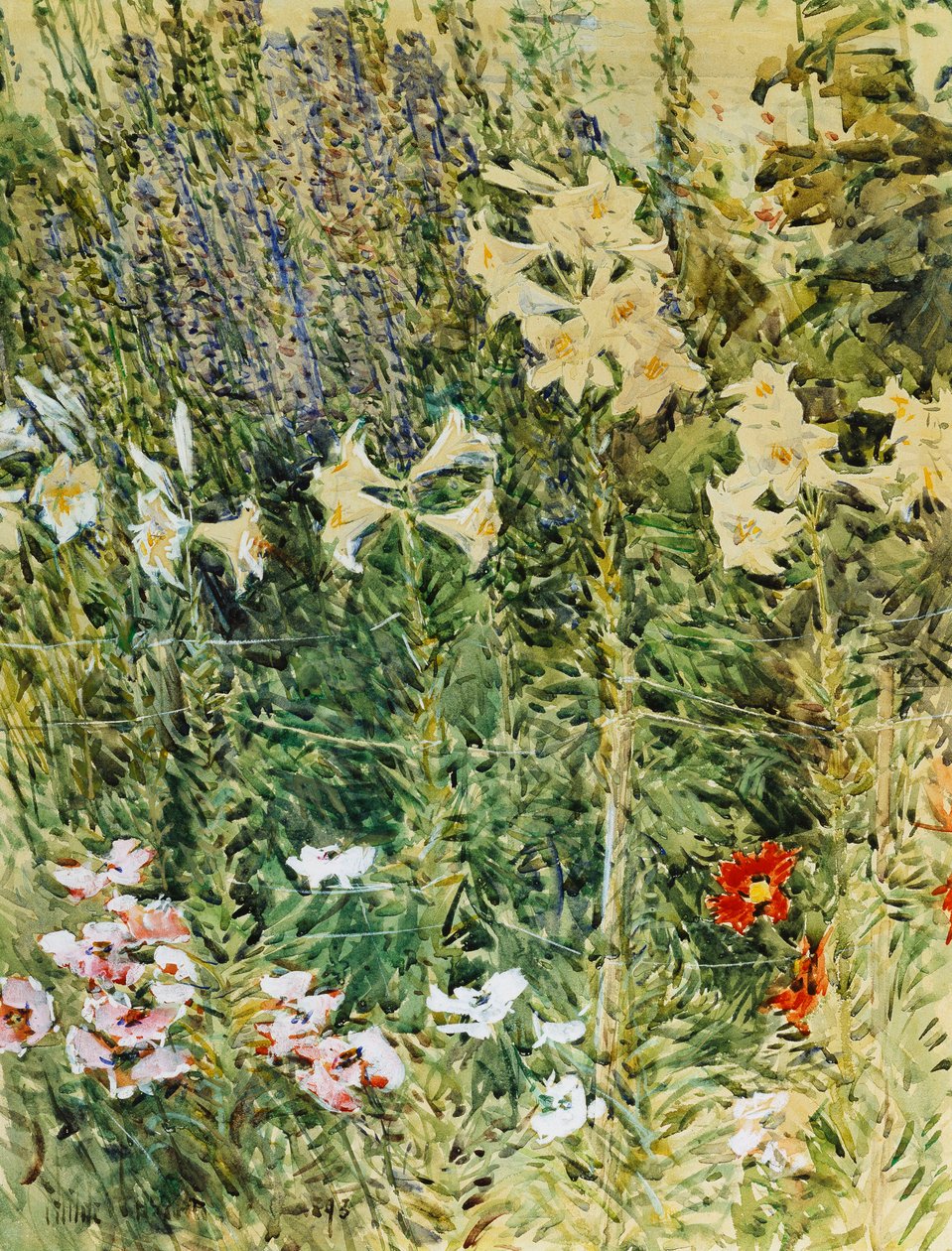 ラークスパーとユリ(Larkspurs and Lillies)チャイルドフレデリックハッサム |