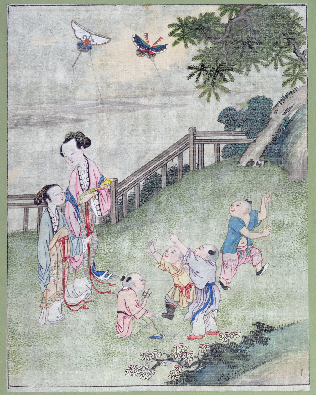 (Children playing with kites, )