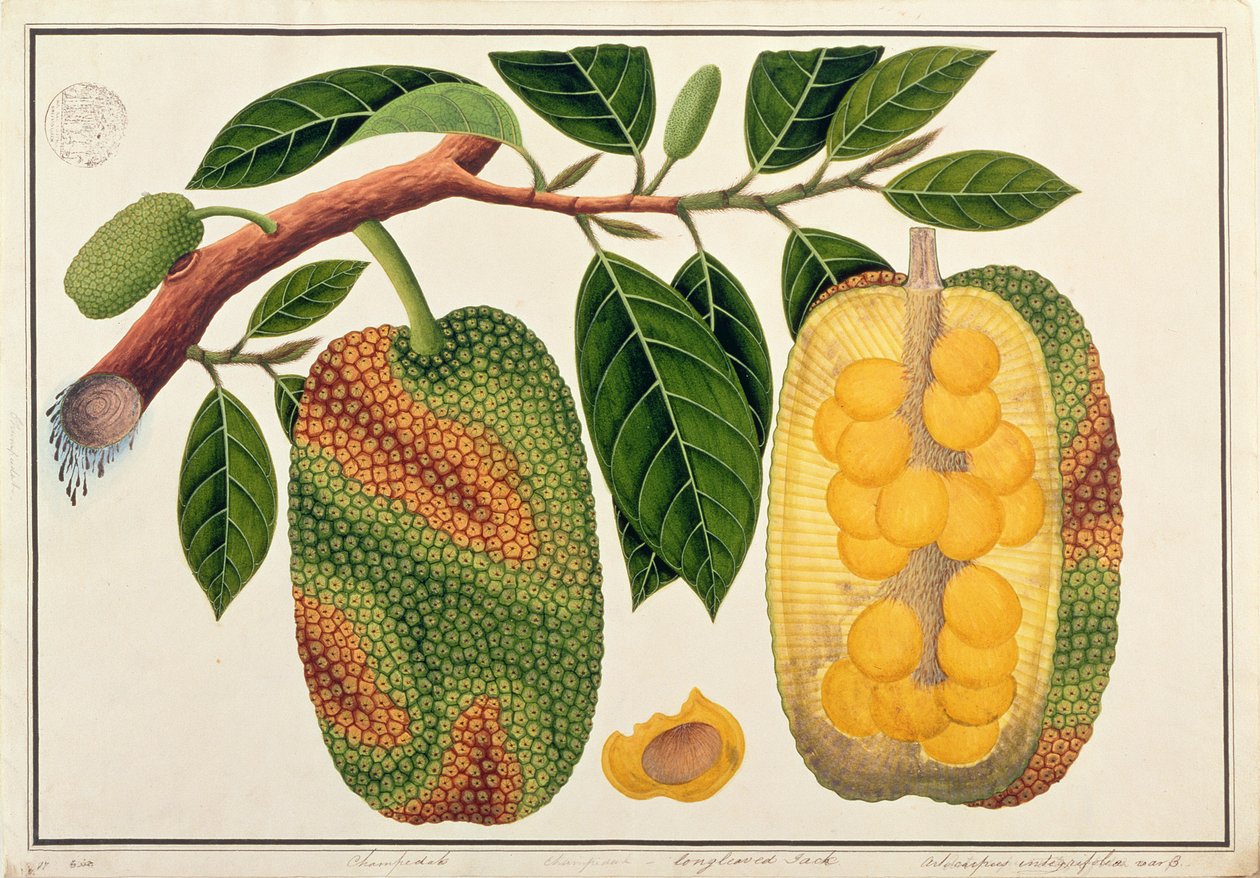 Champedak Artocarpus integrifoliaまたはLongleaved Jack、マラッカの植物の絵、c.1805-18(紙のトイレ)(Champedak Artocarpus integrifolia or Longleaved Jack, from Drawings of Plants from Malacca, c.1805-18 (wc on paper))中国語学校 |