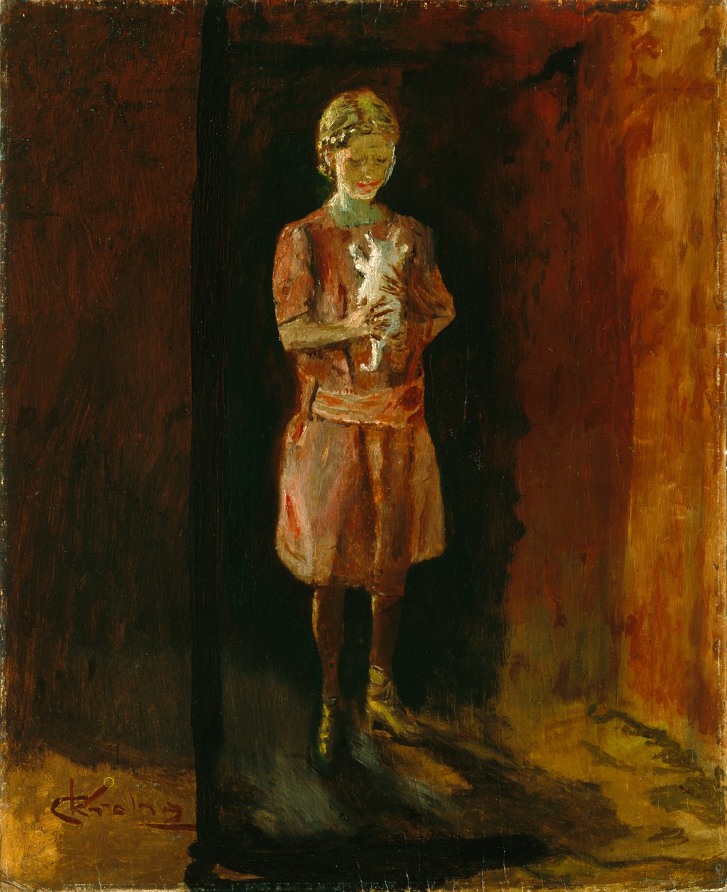 猫と少女(油彩・キャンバス)(Girl with cat (oil on canvas))クリスチャン・クローグ |