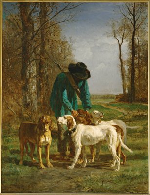 飼い犬の近くで賭博師が逮捕される(Garde-chasse arrete pres de ses chiens)コンスタントエミールトロヨン |