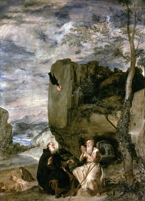 聖アンソニー修道院長と聖パウロ最初の隠者、1642年(St. Anthony the Abbot and St. Paul the First Hermit, c.1642 )ディエゴ・ベラスケス |