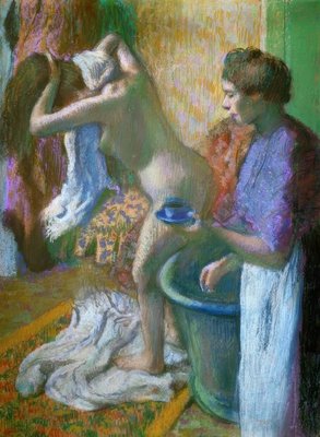 (Breakfast after the bath (pastel on paper))