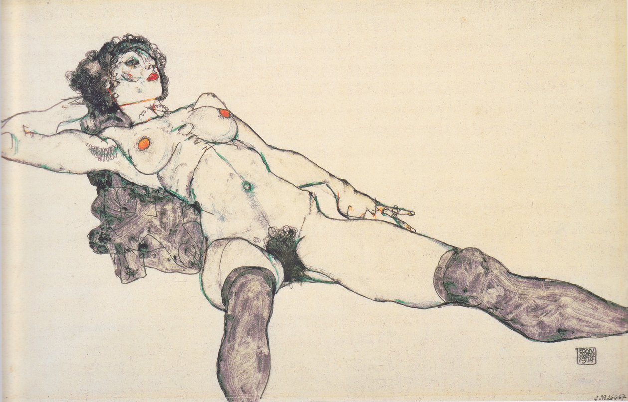 脚を広げて横たわる女性ヌード(Liegender weiblicher Akt mit gespreizten Beinen)エゴンシーレ |