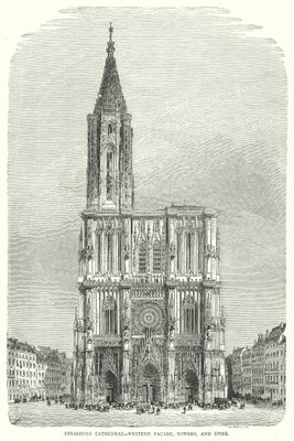 ストラスブールの大聖堂のファサード。1860年、Victor Duruyのパリからブカレストへの旅を説明するためにTherondが描いたもの。1861年の "Le tour du monde "に掲載されたエングレーヴィング。セルバのコレクション。(The facade of the cathedral of Strasbourg, drawing by Therond, to illustrate Victor Duruy's journey from Paris to Bucharest in 1860. Engraving in “” Le tour du monde”” 1861. Selva's collection.)エミール・セオドア・セロンド |