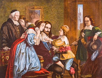 子供たちと別れるチャールズ1世(彩色済みエングレーヴィング) 作: 英語学校