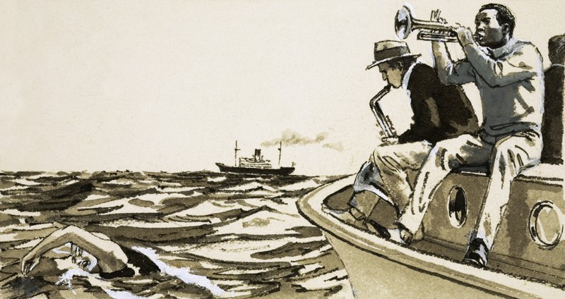 ボートに乗った正体不明のジャズ奏者