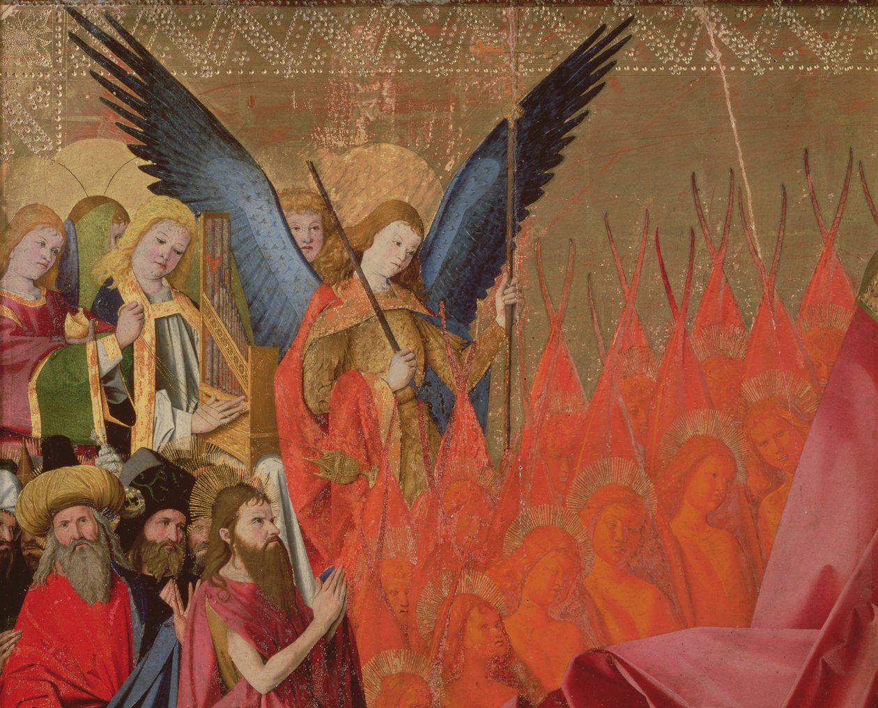 天使と選ばれた役人、聖母の戴冠式の詳細、パネルに1453-54オイル(Angels and elected officials, detail of the Coronation of the Virgin, 1453-54 oil on panel)エンゲランクォートン |