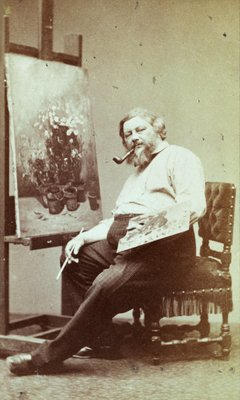 (Gustave Courbet (1819-1877) French painter in his workshop studio, c. 1876, photo Etienne Carjat)エティエンヌ・カルジャット |