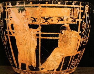 宴と二重笛奏者、キルスまたはアッティカの赤像杯の細部、前490年頃(テラコッタ) 飲むカップ、フルートを演奏する若者と踊る少女のカイリクス、屋根裏部屋、紀元前510年頃 宴会シーン ... フルート奏者を従えたウォー・ダンス. アテネの王エーゲスを描いたアテナイの赤像式キリックス。デルフィックオラクル(陶器)に相談。 フルートを演奏する若者と踊る女性の花瓶絵、紀元前6世紀 オルヴィエート出身の若いヘルメット職人を描いた屋根裏の赤像式カップ、紀元前480年頃(セラミック) 体育館シューズと洗面台を備えたランナー... トラキア人のオルフェウス、アッティカ赤像柱クラテル、紀元前440年頃(陶器)( ヴァルチのアキレステンディングザ傷ついたパトロクルズを描いた屋根裏部屋の赤い人物像kylixの内部、紀元前500年頃(セラミック) 黒釉紅色人物文鉢:生贄の場面(テラコッタ) アテナ、テセウス、ミノタウロス(陶器)を描いた赤像式カップ アリスティデス長老(陶器)による、ピューリッヒを踊る戦士を描いたギリシャの赤像式カップ やり投げの準備をする若い選手たち. 赤と白の図柄のカリクレーター:宴の場面を描いたディテール、ギリシャ(陶器)(85012のディテール シタラを演奏するエフェベ. アウレテ、アウロス(二重フルート)を演奏する音楽家... ニオビッドの死、アッティカ赤像式萼クラテルの詳細、紀元前 450 年頃(陶器)(19106 年の詳細、92576 も参照) 古代ギリシャ。赤い人物が描かれたカップペディウスの画家(紀元前6世紀後半)の作品とされる陶器 紀元前510~500年 パリ、ルーヴル美術館所蔵 トロイの王プリアモスはアキレウスに、殺された息子ヘクトルの遺体を譲ってほしいと懇願する。 イリオペルシス杯:ブリセイスと老いたフェニックス(鳳凰)、アキレスの教育係を表す赤い像が描かれた杯。紀元前5世紀、ブライゴスの作とされています。パリ、ルーヴル美術館 ミュージカルコンテスト、詳細はアッティカ赤像式聖杯形クラテル、イタリアのセルヴェトリ出身、紀元前510年頃(陶器)(92569の逆) アンタイオスのクレーターと呼ばれる、赤く塗られたアッティックのクレーター。 ディノスの画家、紀元前425年頃のセラミック製、テセウスの冒険のシーン、テセウスの詳細と巨大なプロクラステスで装飾された屋根裏の赤像の聖杯クレーター 五輪選手のいるワイン カップ、紀元前 505 ~ 500 年 碑文のある豚の生贄:"エピドロモスは美しい" ... 宴会中の若者たち...