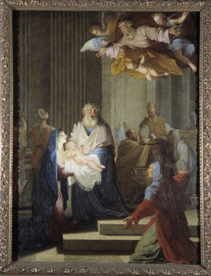 神殿でのプレゼンテーション(キャンバスに絵画)(Presentation in the Temple (painting on canvas))ユスターシュ・ル・スール |