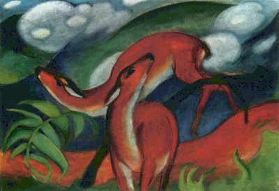 キツネ ブルーホースI フォックス、1913 あのトラ 風景の中の動物1914 青い馬の塔、1913年 形をする 雪の中で横になっている犬 4匹のキツネ 白猫 タイガー、1912(日本紙に木版画) ブルーフォックス、1911 厩舎 オークの木 黄色い牛