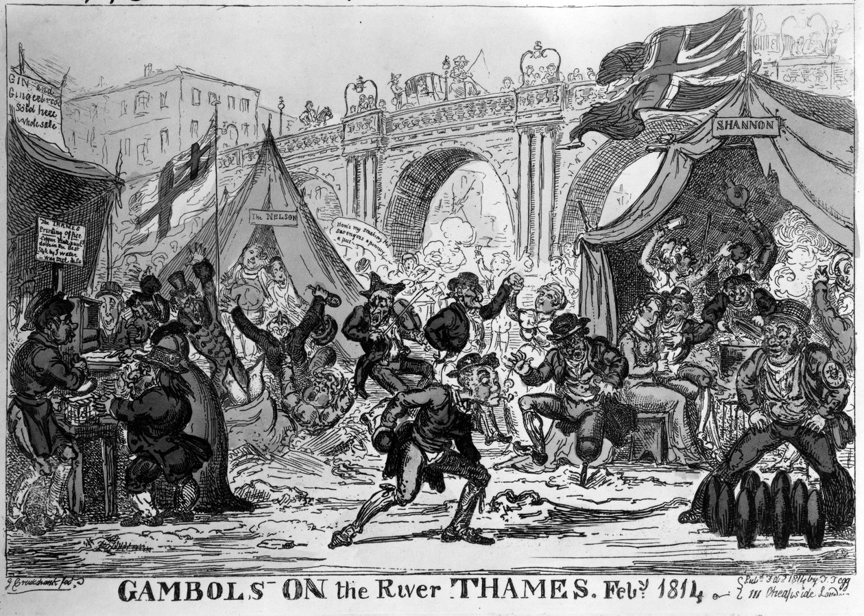 テムズ川のガンボル、1814年(手描きのエッチング)(Gambols on the River Thames, 1814 (hand-coloured etching))ジョージ・クルクシャンク |