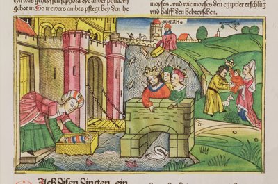 (Rescue of Moses, scene in the Bible of Nuremberg written in German, ...)