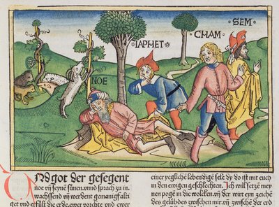 (Noah and his sons, scene in the Bible of Nuremberg written in German, ...)