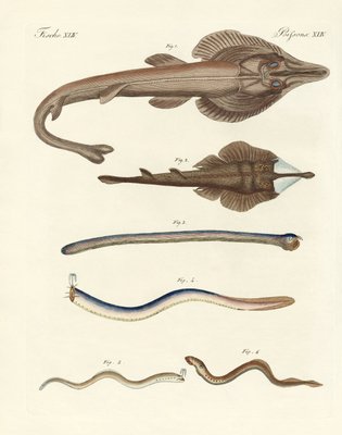 奇妙な軟骨魚(彩色済み彫刻 作: ドイツ語学校