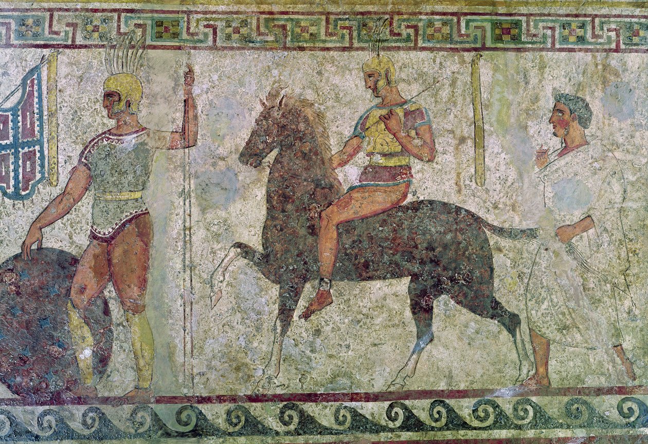 (Cavalryman and a foot soldier, tomb painting from Paestum )