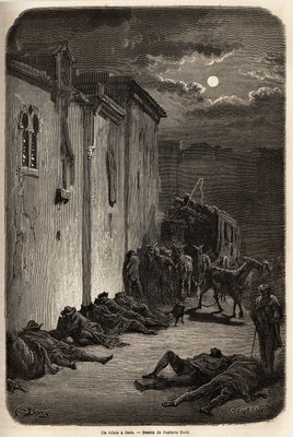 ジェロナとペルピニャン間の夜の精勤(エングレーヴィング) 作: ギュスターヴ・ドレ