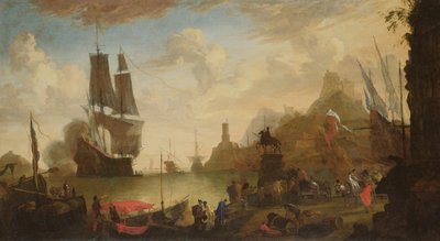 イタリアの港の眺め(キャンバスに描かれた絵)(View of an Italian port (painting on canvas))ヘンドリック・ファン・ミンダーハウト |