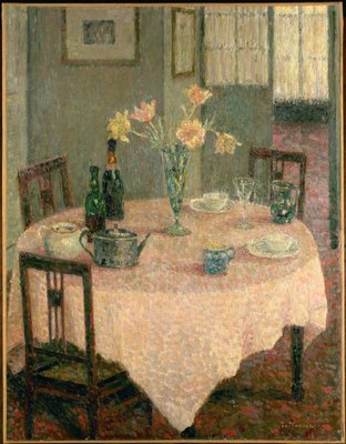 (Interior with pink tablecloth (painting))アンリ・ユージン・オーギュスタン・ル・シダネル |