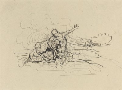 ケンタウロスが女を連れ去る(敷き詰めた紙に、クレヨンの上にペン、黒インク、ウォッシュ仕上げ) · オノレ・ドーミエ