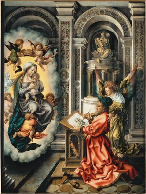 (Saint Luke paints the Madonna (painting on oakwood))ヤン(c.1472-c.1533)ゴサート |