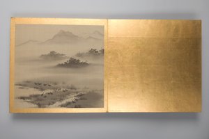 紙本墨画) 山水図、17世紀初頭(六曲一双屏風、紙本墨画、金彩