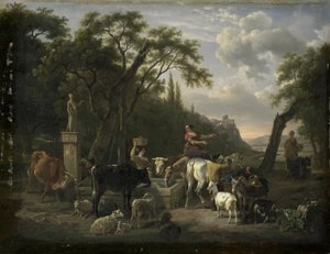 (Italian Landscape with Shepherds and Animals at a Fountain)ジーンルイスデマルヌ |