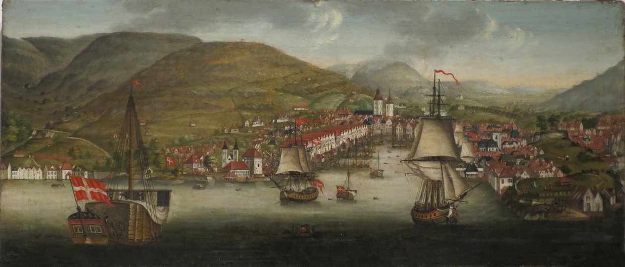 ベルゲン港の眺め(View of Bergen Harbour)ヨハン・クリスチャン・ダール |