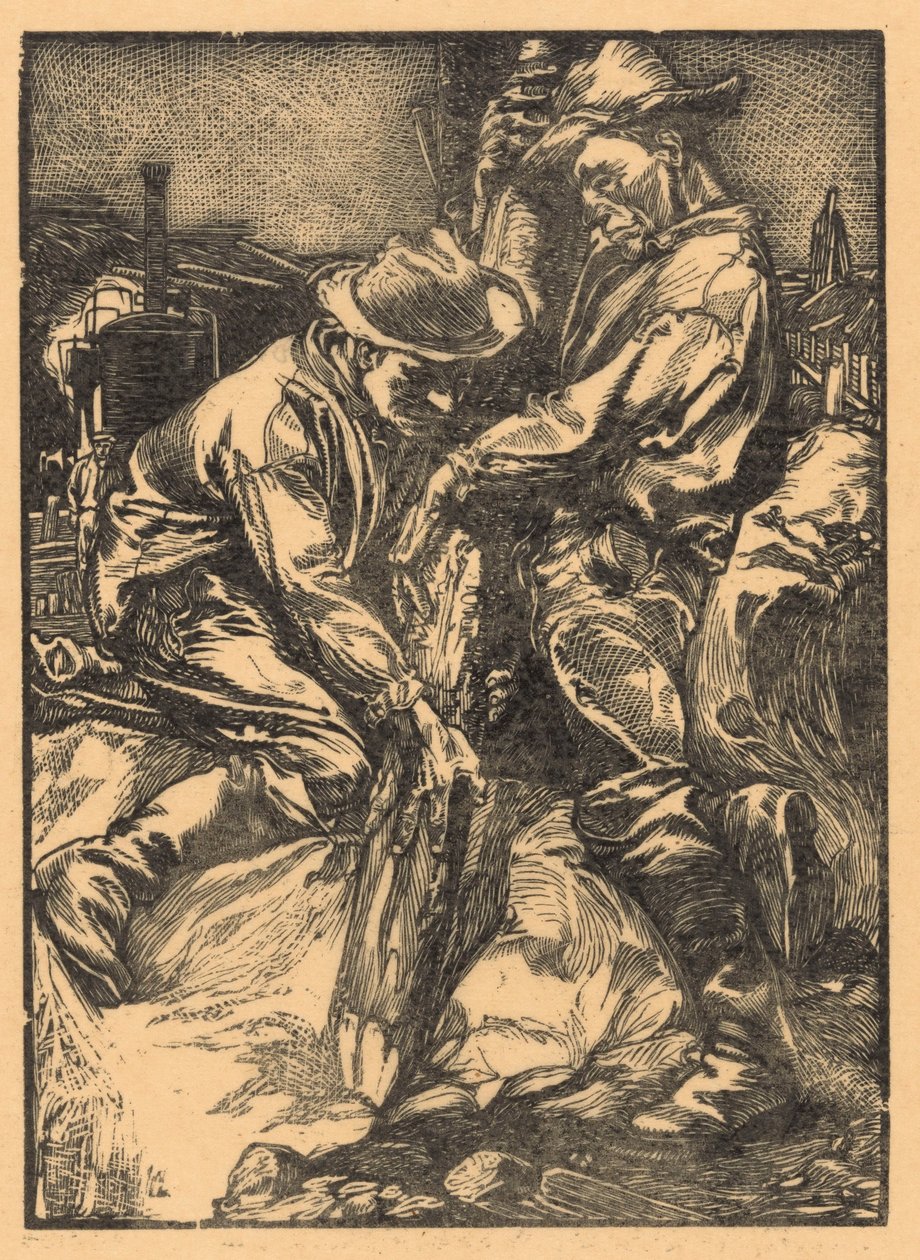 杭打ち工事に従事する建設作業員(Bouwarbeiders bezig met heiwerk)ヨハネスジョセフスアーツ(print maker) |