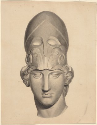 ヘルメットをかぶったアンティークの頭部(筆とグレーのインク、グレーのウォッシュ)(Antique Head with a Helmet (brush and gray ink with gray wash))ジョン・フラックスマン |