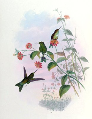 Lophornis chalybeus フェスティブ コケット。 作成者: ジョン・グールド、ヘンリー・コンスタンティン・リヒター。(Lophornis chalybeus Festive Coquette. Creators: John Gould, Henry Constantine Richter.)ジョン・グールドとヘンリー・コンスタンティン・リヒター |