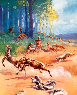 (A scene from the evolution of the horse (colour litho))レナード・ロバート・ブライトウェル |