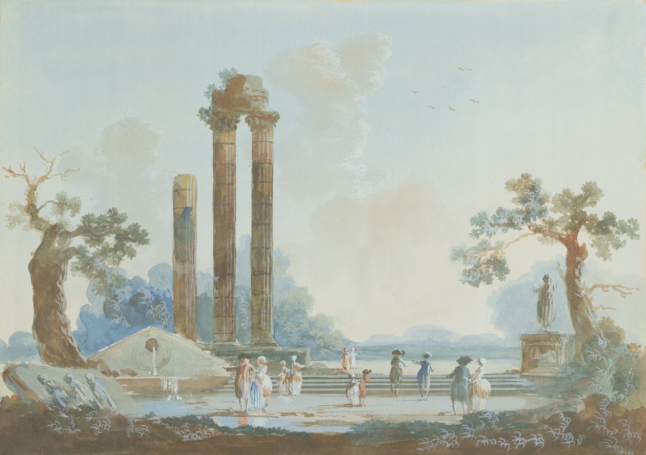 夕暮れの公園の遊歩道:ペンダントのセット、1784(ペアについては309377を参照)(Promenade in a Park at Dusk: A Set of Pendants, 1784 (see 309377 for pair))ルイ・ガブリエル・モロー |