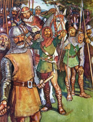 「ロックスリーは任命された駅に足を踏み入れて矢を放った」、イラストは「少年少女のためのアイバンホー」のイラストで、パブのアリス・ジャクソンが再販した。 1924('Locksley Stepped to the Appointed Station and Shot his Arrow', illustration from 'Ivanhoe For Boys and Girls', retold by Alice Jackson, pub. 1924 )モーリス・グリッフェンハーゲン |
