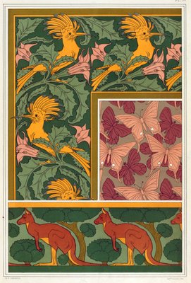 エキゾチックアニマルモチーフ:オカメインコ、蝶、カンガルー(リトグラフ)(Exotic Animal Motifs: Cockatoos, Butterflies and Kangaroos (litho))モーリス・ピヤール・ヴェルヌイユ |