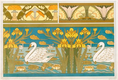 白鳥、昆虫、アイリスの飾り罫(リトグラフ)(Decorative Borders with Swans, Insects and Iris (litho))モーリス・ピヤール・ヴェルヌイユ |