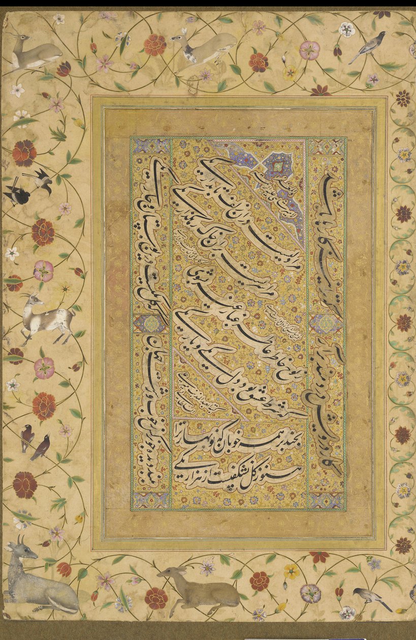 後期シャージャハンアルバムの書道、1640〜50年頃(不透明な水彩画と紙の上の金) ムガールアルバムのペルシャ書道のサンプル(インク、不透明なトイレ、紙の上の金) 聖母マリアの書道の詳細、キリストの子供を崇拝、1620〜30年頃不透明なトイレと紙に金 バドルアルディンヒラーリジャガータイペルシャのガザールの書道、活動的c。 1500、c。 1550。 Nasta 15 世紀後半から 16 世紀初頭にかけて散在する muraqqa やアルバムの書道のページ ミラン・アリの詩の詩、イランのムラカのページ(インク、不透明なトイレ、紙の上の金) Abd al-Rahman Jami (Persian, 1414–1492) の Panj Ganj からのページ。2 人のペルシャ人のマスナビス: Yusuf va Zulaykha (Joseph と Zulaykha) と Khirad-nama-i Iskandari (verso)。 オーランゲブの結婚時のお祝い、1640年頃(紙に不透明なWCと金) ミントアルバムからのムガール帝国境のヘラートのミラアリによる書道(紙に不透明なトイレ) Abd al-Rahman Jami Persian、1414-1492...、1603-1607 の Panj Ganj のページ。 ナスタリク書道、16世紀前半.. Nasta "liq quatrain 叙情的なQuatrainの書道、c。 1760。 ムガール王子の肖像画の多分、おそらくシャーシュジャ、1645-50年頃 サンクトペテルブルクのアルバムからの書道(FGA F1942.17b) Nasta "liq quatrain、1606-7 後期シャジャハンアルバムの書道(2つの詩とアミールシャヒのディワンのカプレット)c.1640-50(不透明な水彩、インク、紙の上の金) に。 20、f.150vジャミのパンジガンジ、1603年頃 ジャハンギールアルバム、ムガールのフォリオ、1610年頃 書道アルバムページ