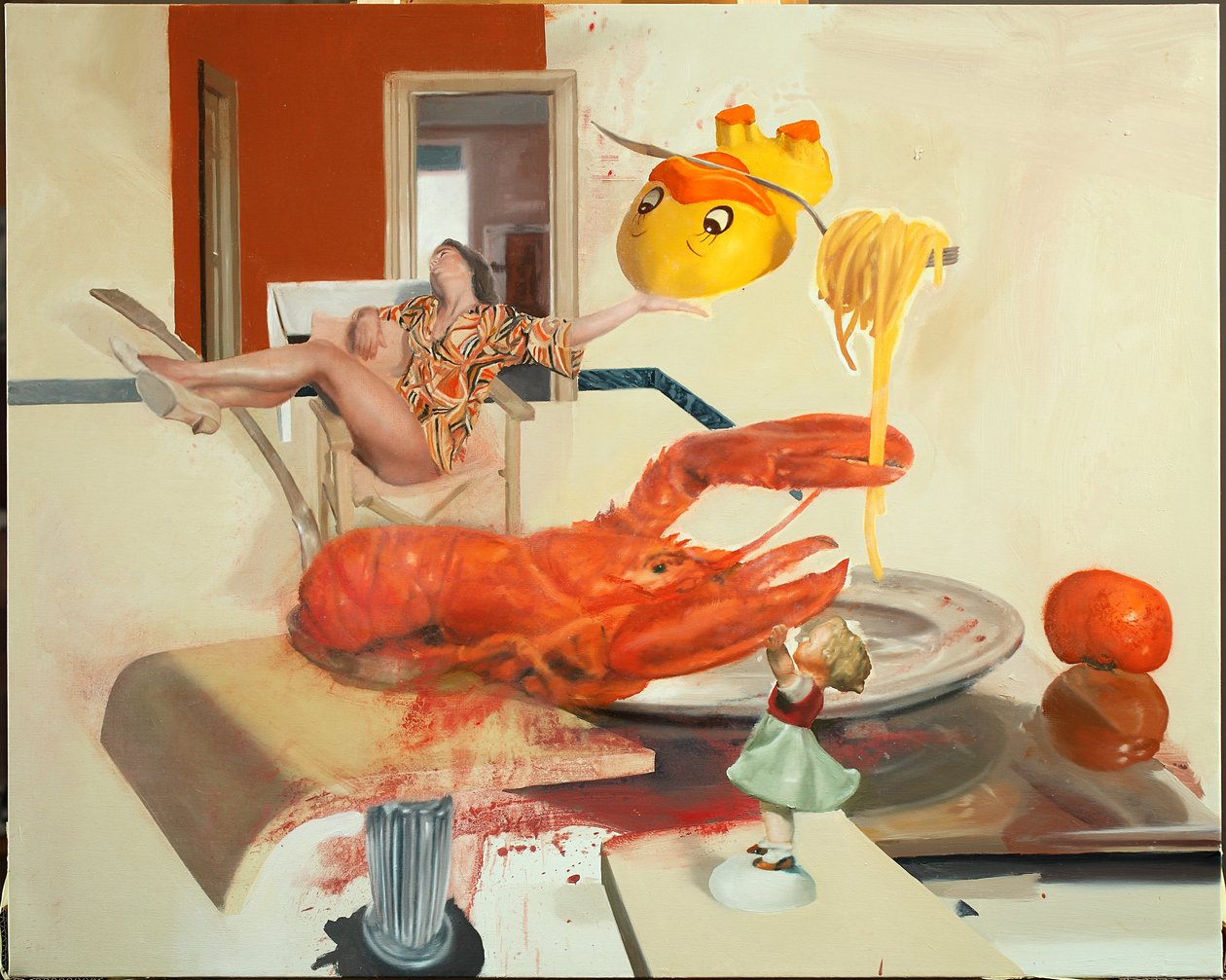 ロブスターを持つ女, 2011 (キャンバスに油彩)