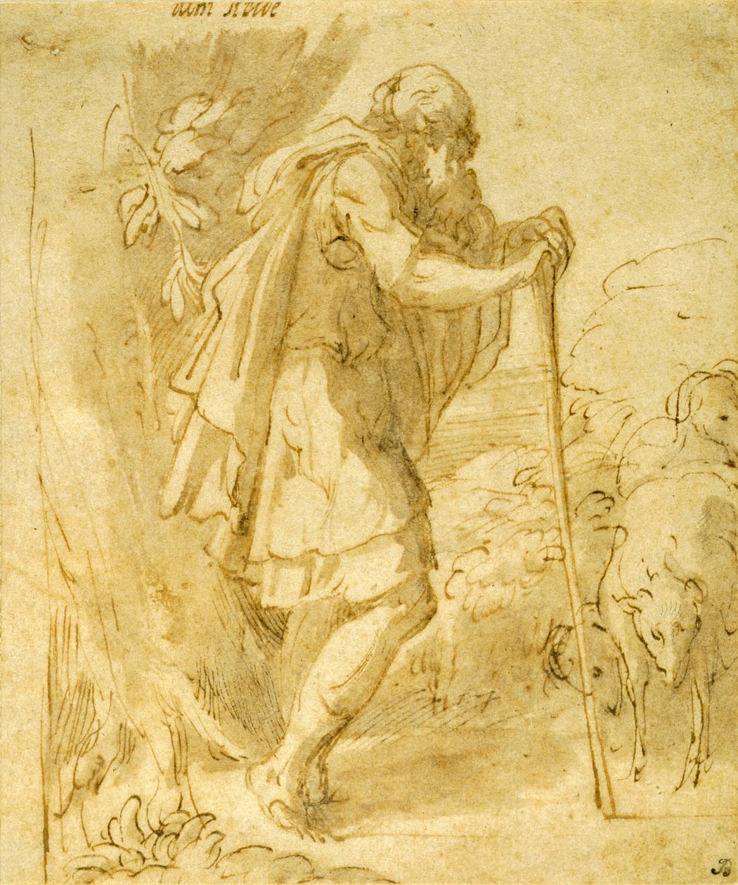 杖に寄りかかる年老いた羊飼い · パルミギアニーノ