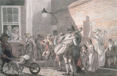 町の貧しい地域で演奏する巡回ミュージシャン 作: ポール・サンドビー